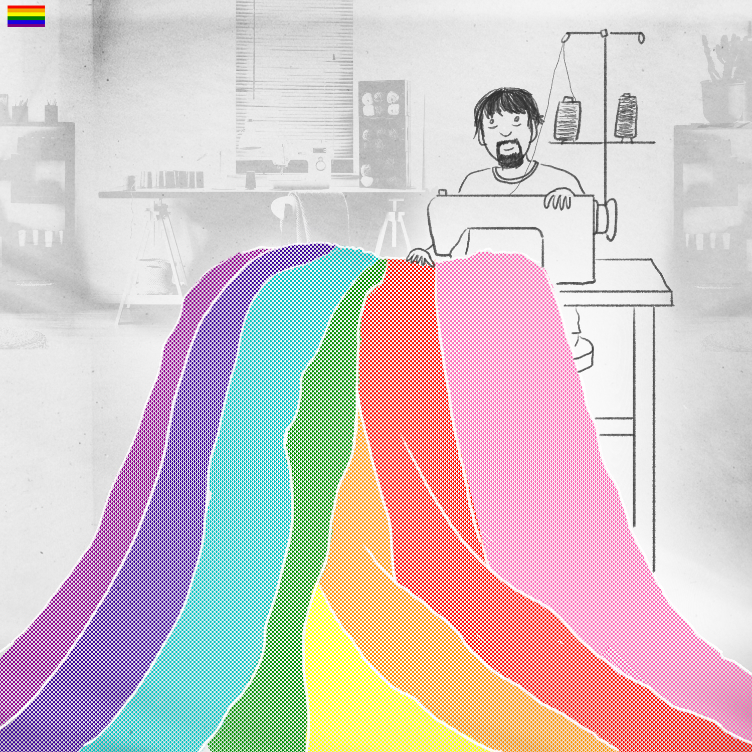 Gilbert Baker designed the now iconic rainbow flag. He created two flags at the Gay Community Center in San Francisco with thirty volunteers who helped hand dye and stitch the flags for San Francisco Pride in 1978.
